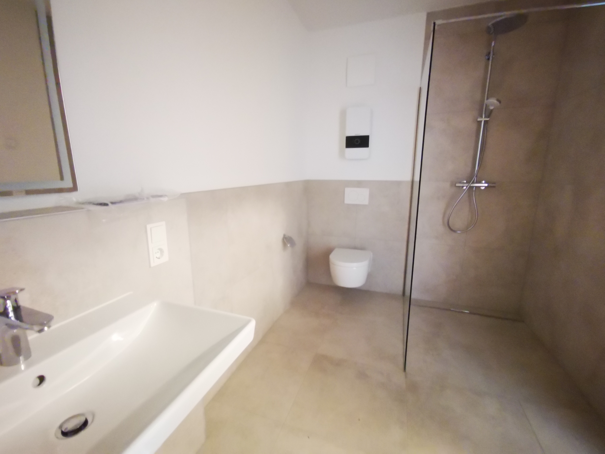 Die Wohnung ist mit hochwertigen Fliesen und hochwertigem Bodenbelag ausgestattet. Die moderne Fußbodenheizung sorgt für ein angenehmes Raumklima. Große Fensterflächen bringen viel Tageslicht in alle Räume. Rollläden sind vorhanden. Der Wohnbereich bietet direkten Zugang zum sonnigen Balkon. Im offenen Wohn-/Ess-/Kochbereich finden Sie großzügige Anschlussmöglichkeiten. Die Wohnung wird ohne Einbauküche übergeben. Die Küchengestaltung erfolgt durch den Mieter – individuell und nach eigenen Vorstellungen. • ca. 69 m² Wohnfläche • Offener Wohn-/Ess-/Kochbereich (ohne Einbauküche) • 1 Schlafzimmer • Tageslichtbad mit bodengleicher Dusche • Diele & Abstellraum in der Wohnung • Süd-Balkon • Hochwertiger Bodenbelag & Fußbodenheizung • Große Fensterflächen mit Rollläden • Personenaufzug • Eigener Kellerraum (EG) Optional: – Außenstellplatz: 50 €/Monat
