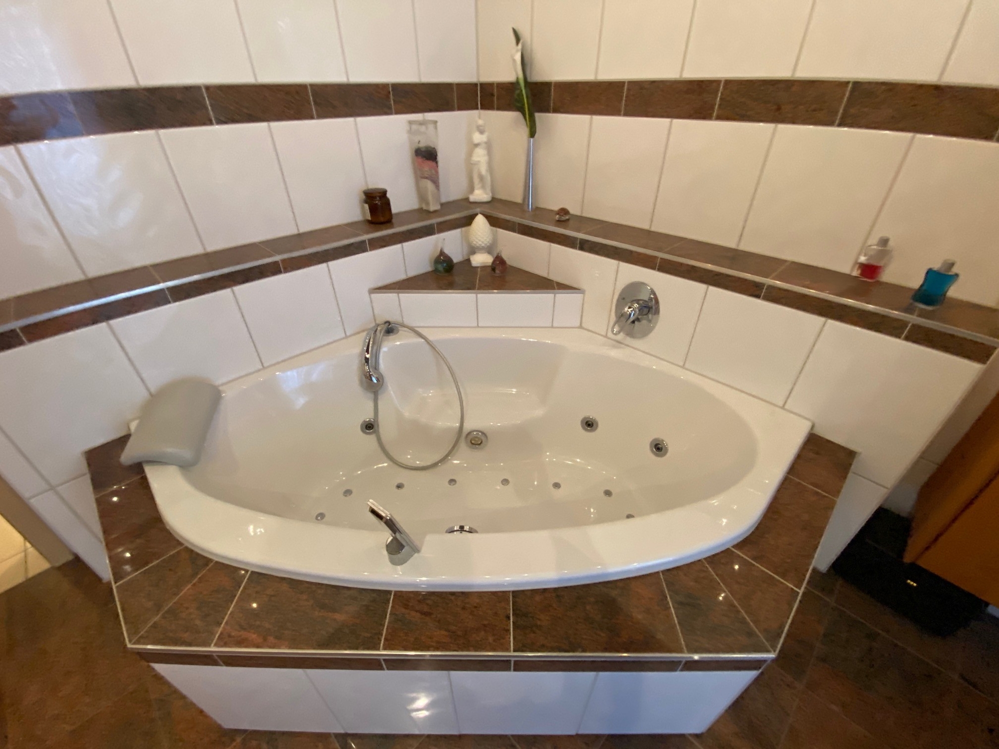 Ein besonderes Highlight ist die Badeoase zum Träumen: eine elegante Kombination aus Badewanne, und Dusche in stilvollen Materialien und liebevollen Details –