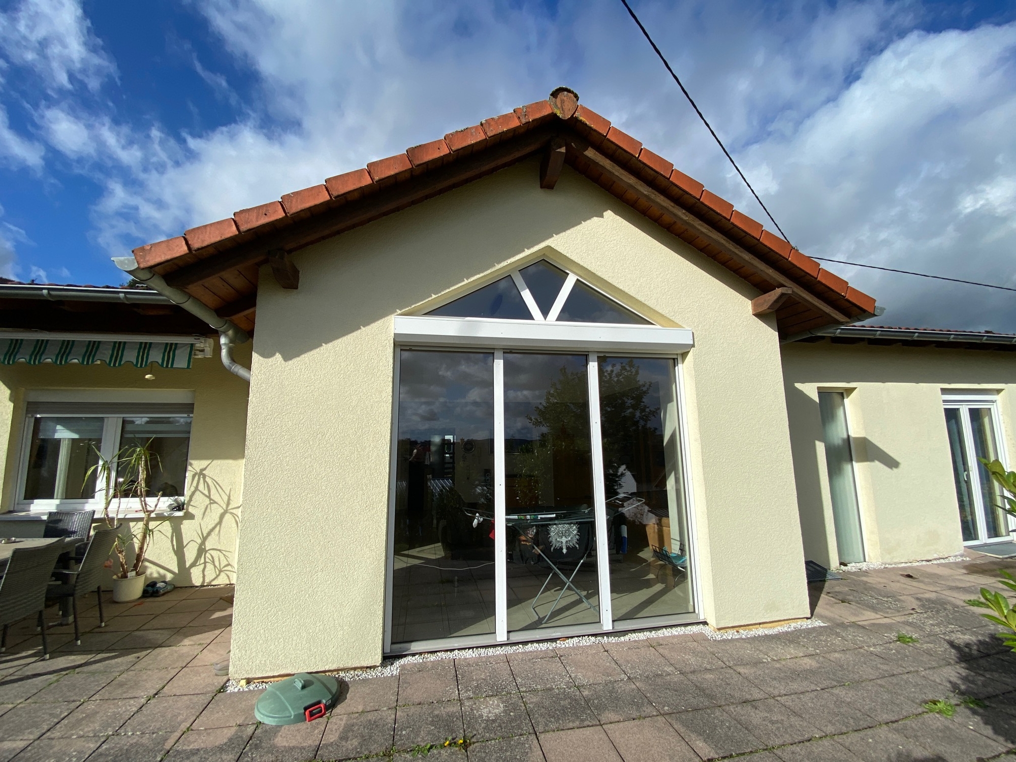 Dieser großzügig gestaltete Bungalow überzeugt durch seine harmonische Architektur, lichtdurchflutete Räume und eine idyllische Lage, die Ruhe und Lebensqualität vereint.