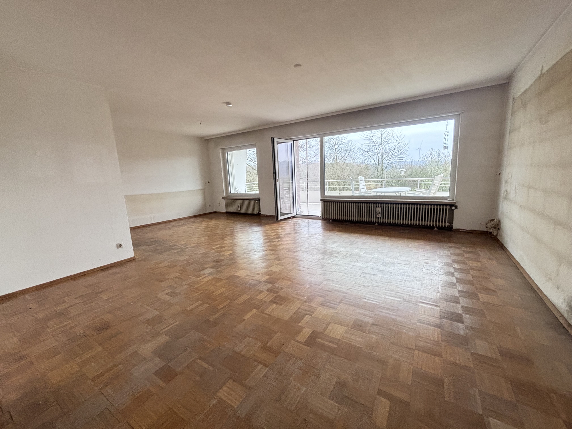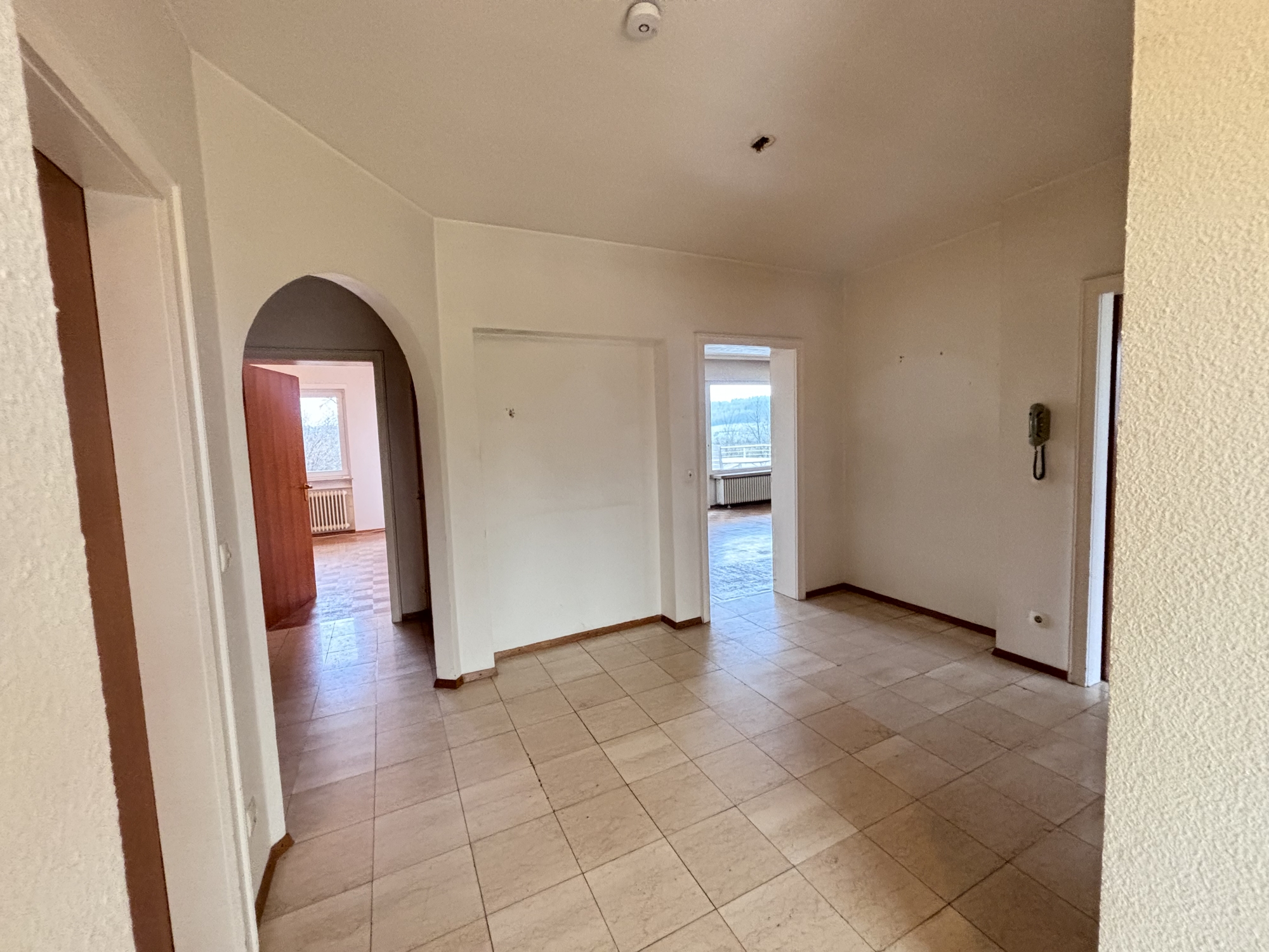 Zweckmäßig gestaltet, die separate Küche mit übergehendem Ess- und Wohnzimmer, welches den Zugang zum Balkon hat, der Blick in die FERNE ist garantiert !