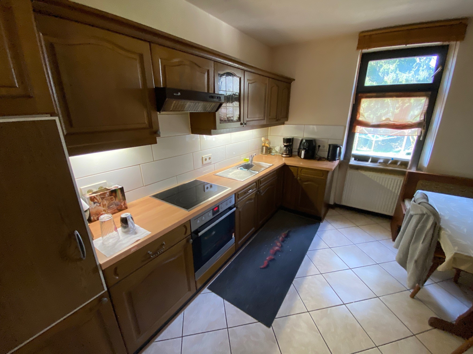 Angrenzend befindet sich die Essküche, die ausreichend Platz bietet, um gemeinsam zu kochen, neue Rezepte auszuprobieren oder Gäste zu bewirten.