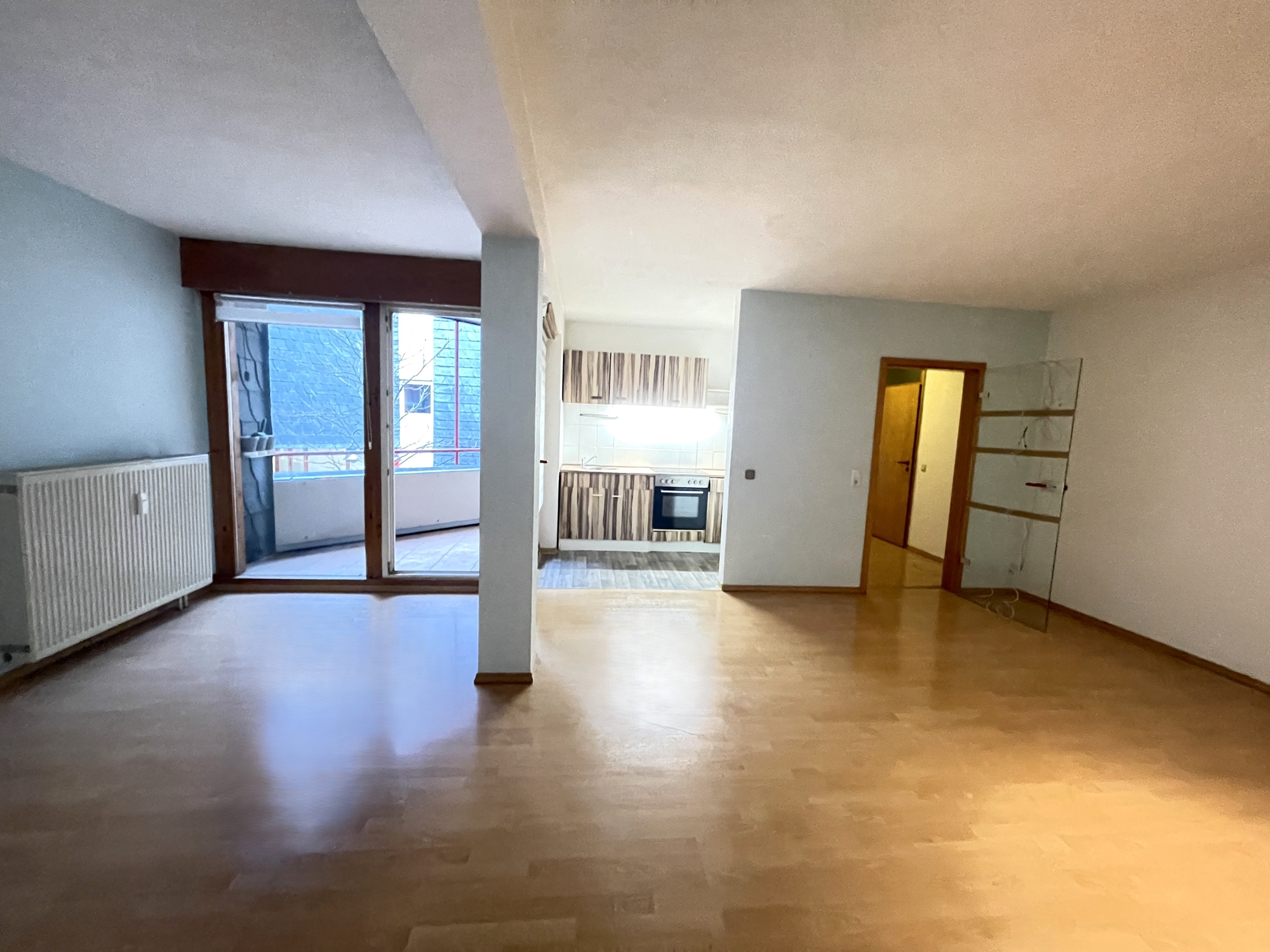 Die hier angebotene 3-ZKB-Wohnung liegt im 1. Obergeschoss eines soliden Mehrfamilienhauses, nur wenige Meter vom Schlossplatz entfernt, in zentraler Innenstadtlage, im direkten Umfeld der Fußgängerzone und der historischen Altstadt. Dies bedeutet kurze Wege zu Einkaufsmöglichkeiten, Gastronomie und Dienstleistungen. Die Wege in der City sind meist angenehm zu Fuß oder mit dem Rad machbar.