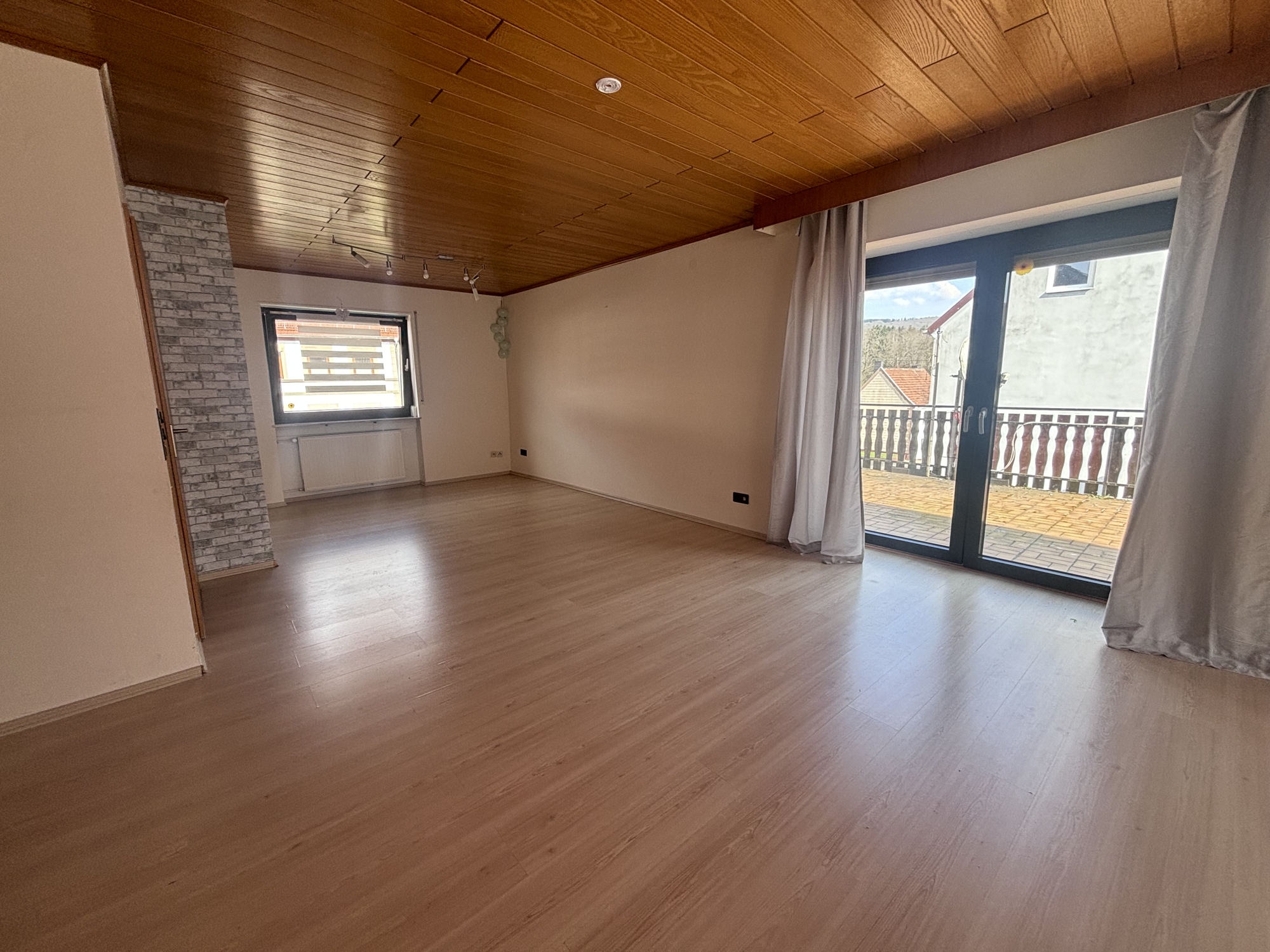 Große Fenster lassen viel Licht herein und schaffen eine warme, einladende Atmosphäre. Von hier aus gelangen Sie direkt auf die sonnige Terrasse – ein Ort, an dem der Tag mit einem Kaffee beginnen und entspannt ausklingen kann.